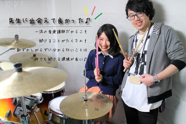 私のレッスンでは基礎から個人それぞれを大切にし、長く、楽しくドラムが続けられるようサポートしていきます!!